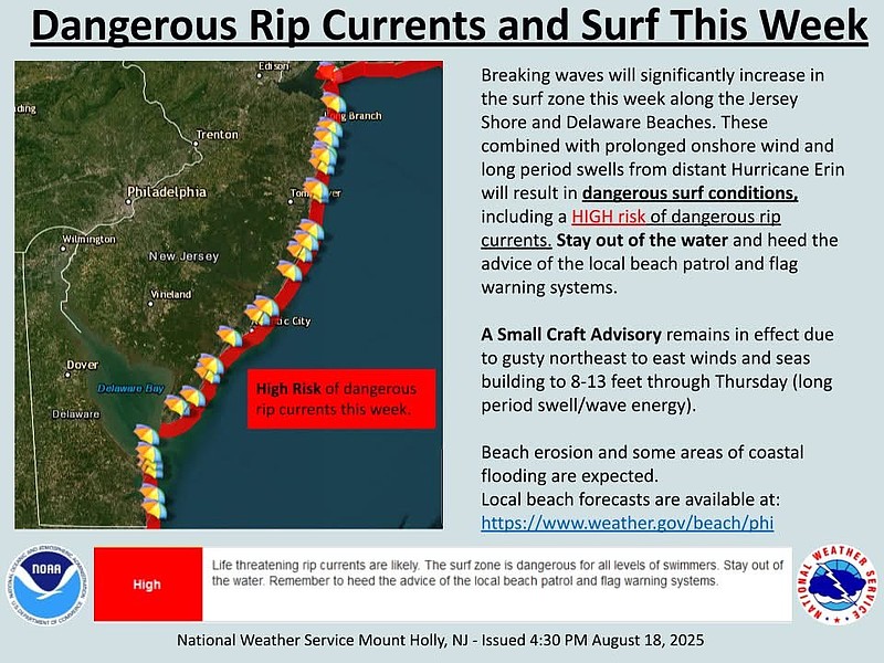 Ventnor City issued an advisory on its social media pages today, noting city officials are closely monitoring Hurricane Erin and its potential impacts along our coastline this week.