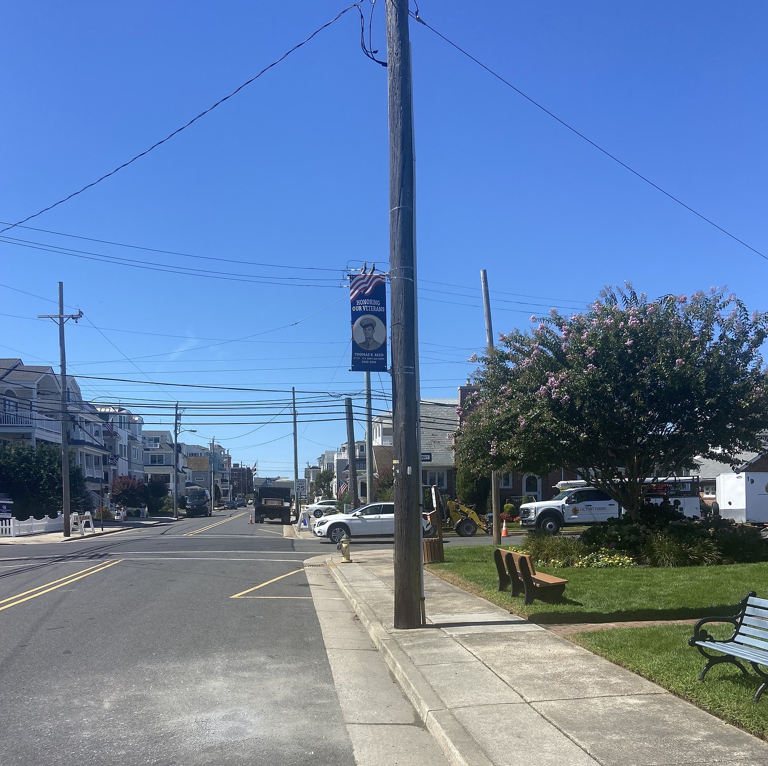 The banners are being erected along Atlantic Ave instead of Ventnor Avenue as was originally planned. Pacentrilli said the switch was made to accommodate prior approval granted by Atlantic City Electric for town banners and flags on its utility poles, which will be replaced with the veterans’ banners.