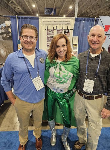 Margate resident Sherri Lilienfeld – aka Sustainable Sherri – attracted attention in her shiny green superhero outfit and cape. Representatives of each of the coalition partners tabled at the three-day event to share information about how to adopt construction containment ordinances. But the real goal is to make it a statewide law.