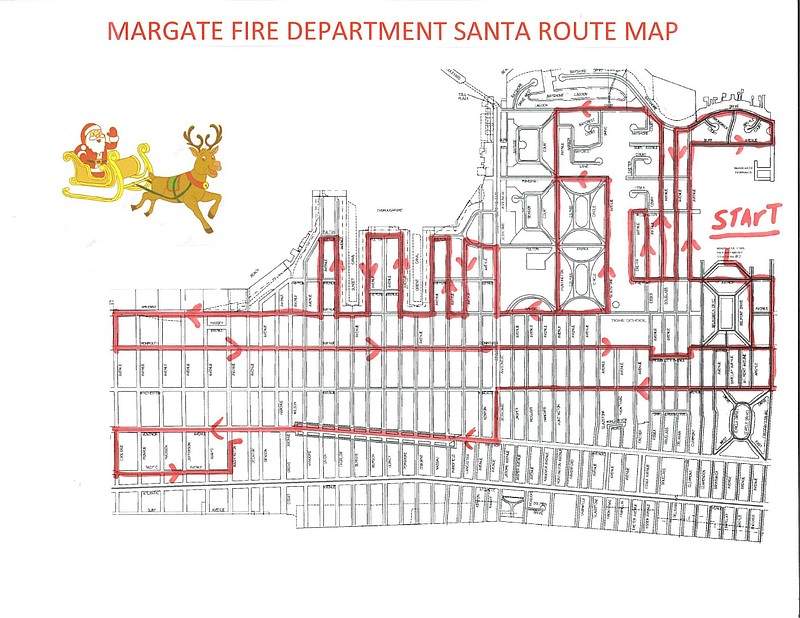 The Margate City Fire Department will act in the place of Santa's real reindeer and pull his surfboat around town according to the travel route map below.