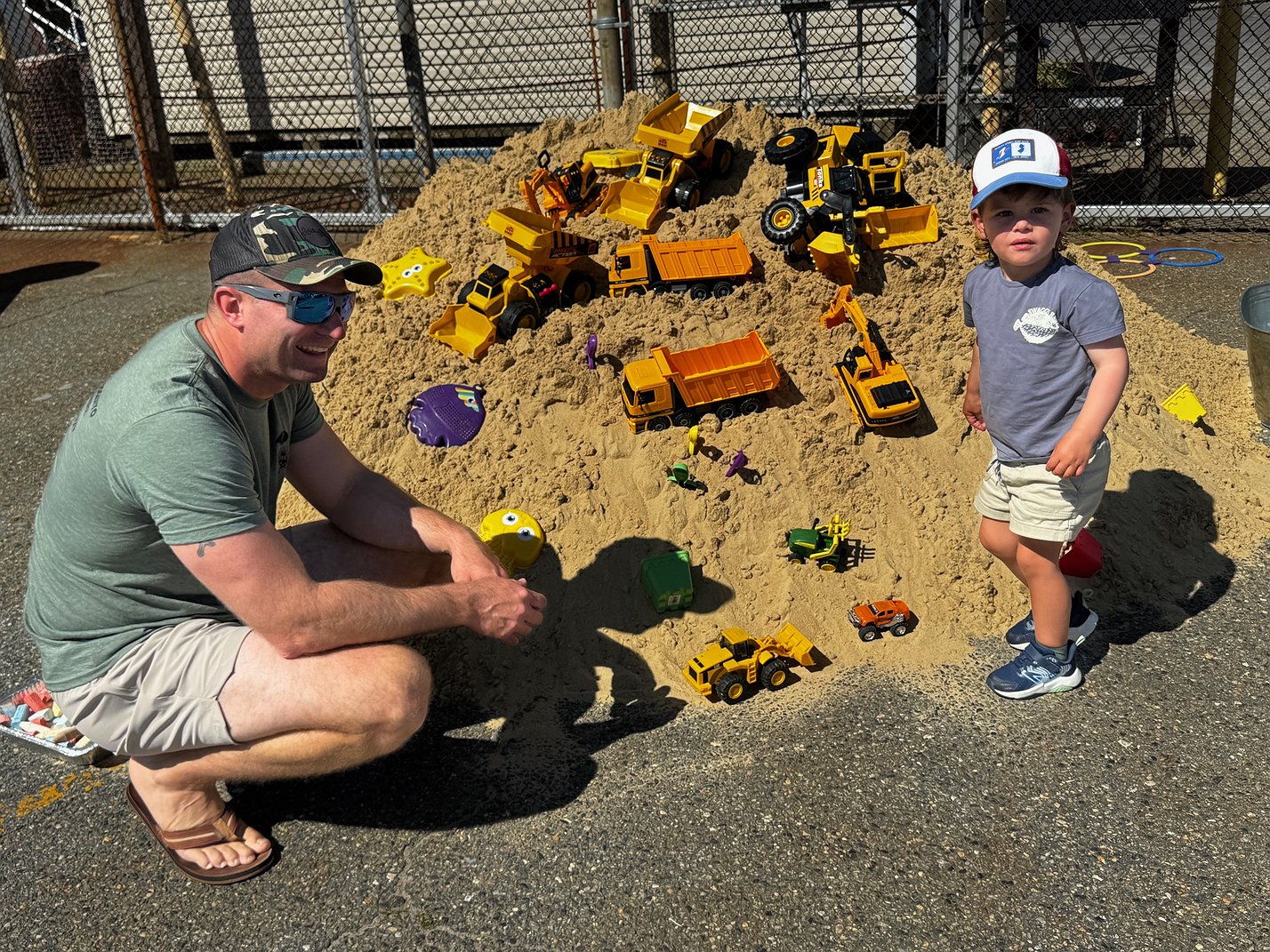 The display was enjoyed by children of all ages, including a dad who played with his son in a pile of sand loaded with Tonka trucks. Under a nearby canopy, the city’s Recycling Coordinator Anthony Edge had children spin the wheel to determine which prize they could pick from the display on a table loaded with giveaways.
