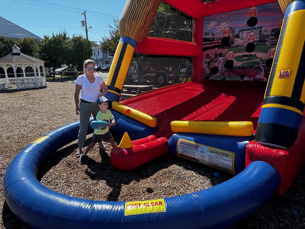 Margate children are used to climing on swings and monkey bars across the street, but on Wednesday, they got to play on several blow-ups that featured a football toss and baseball swings.