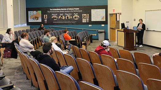 Since she arrived the second weekend in October, Hondius has guest lectured in Stockton Holocaust and Genocide Studies classes, visited several South Jersey high schools enrolled in the university’s dual-credit program, and taken part in a speaker series at the Jewish Community Center in Margate.