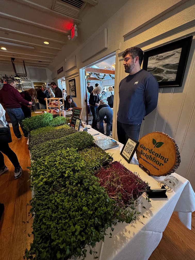 The farmer at Gardening Neighbor of Egg Harbor Township was selling microgreens planted just 10 days ago and clipping them fresh from the flat. He explained that he plants the seeds about two weeks before any farmers markets or vendor events he attends and sprouts them in his greenhouse.