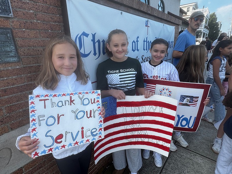 “This is the 14th year we have participated in Wounded Warrior Week,” Eugene A. Tighe School fifth and sixth grade social studies teacher Jen Carey said Tuesday morning. “We usually gather at the Margate Public Library to welcome the wounded warrior to town. When the parade was cancelled last week, the students were disappointed. So, we asked the students’ parents to save the posters they made to use them at an event during the week.”
