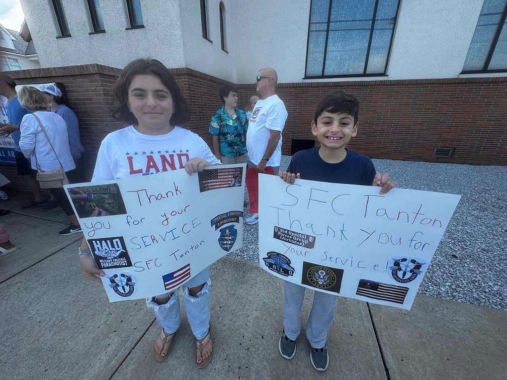 LONGPORT – Students of the Margate schools were disappointed when the Wounded Warrior Week parade was cancelled last week due to the rain. They had worked hard for days making patriotic posters to thank U.S. Army Green Beret Sgt. 1st Class Chase Tanton and his family for their service to the nation.