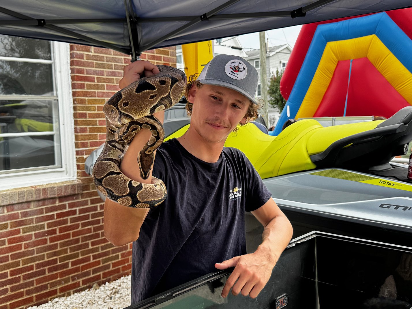 Visitors lined up to purchase some tasty morsels from local and regional food vendors or libations from the Tito’s tent. Children lined up to take their chance of making a basket or hitting a homerun at a row of blow up amusements. And those interested in learning about the Monarch butterfly migration and which plants attract the beautiful orange, black and white butterflies enjoyed a learning experience at Scott's Dock. At the Sustainable Margate display a young man delighted children with a snake wrapped around his neck standing next to a fishtank filled with tiny terrapins.