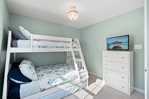 Bedroom 3: Twin over Queen Bunkbed with a twin trundle.
