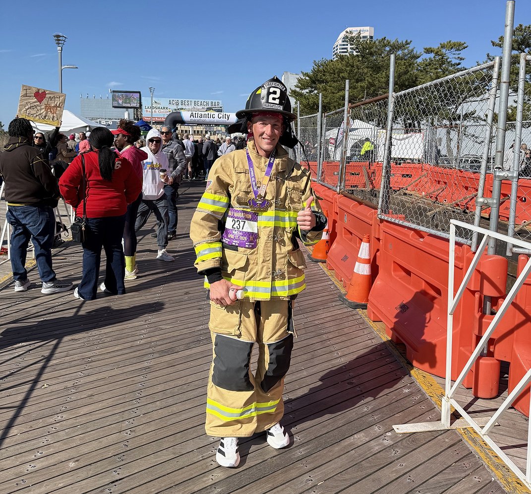 He completed the run, not as a fundraiser for any cause other than the JCC’s entry fee, but to foster awareness of the contributions firefighters make on a daily basis to help others.