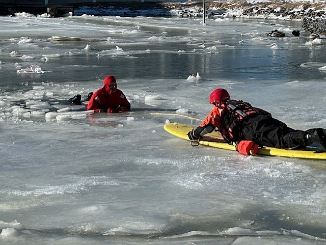 "This was a great opportunity for both fire department’s to work together with the unique opportunity of having the bay frozen over to do this training," Margate Fire Chief Dan Adams said. "It was a great opportunity to learn from each other the proper way to initiate a successful rescue operation."