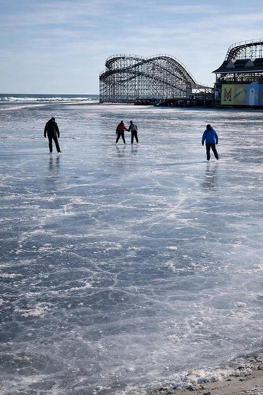 If you’re dreaming of the Winter Olympic Games and really want to go ice skating, take a drive down to Wildwood, where you can skate on the flat, wide, frozen beach in front of the Convention Center.