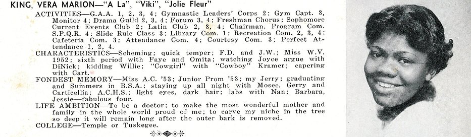 Vera Marion King grew up in Atlantic City and graduated third in her class from high school there.