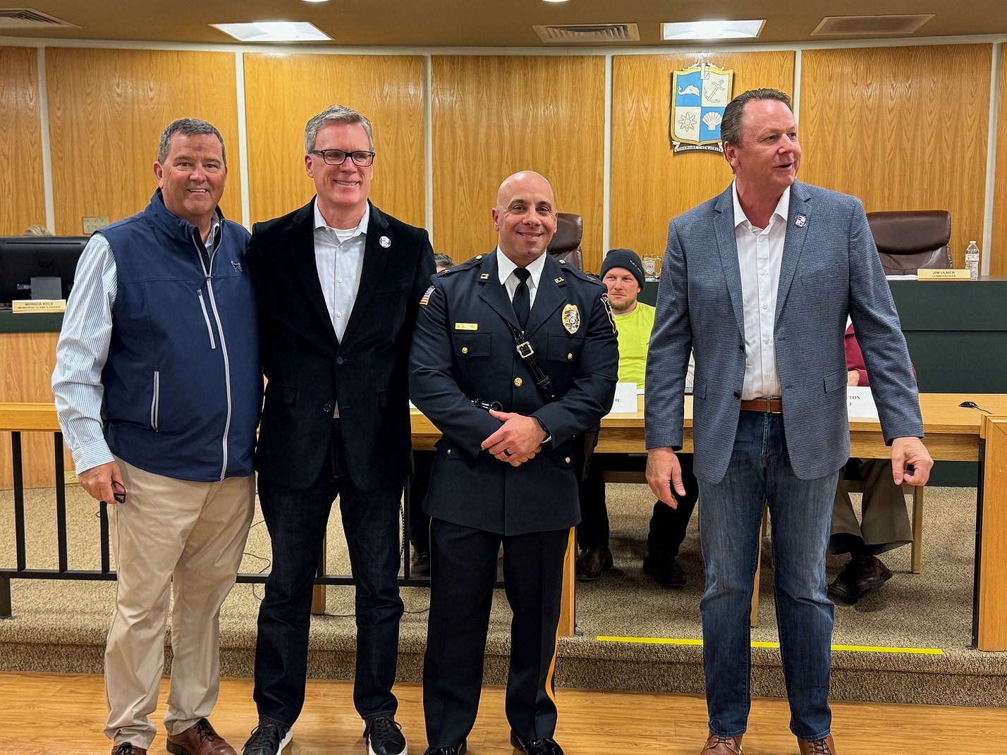 Commissioner of Public Safety Dan Lawler swore-in Burgan as the department’s eighth chief of police Wednesday, Feb. 18. Burgan’s wife Cherie, a captain in the Egg Harbor Township Police Department, held the Bible while their children Hazel and Vaughn watched from their seats. The entire Longport Police Department was there to support their new leader. Also in attendance were numerous police chiefs from around Atlantic County, along with Atlantic County Sheriff ‘Tokyo’ Joe O’Donoghue, Burgan’s parents, family and friends.
