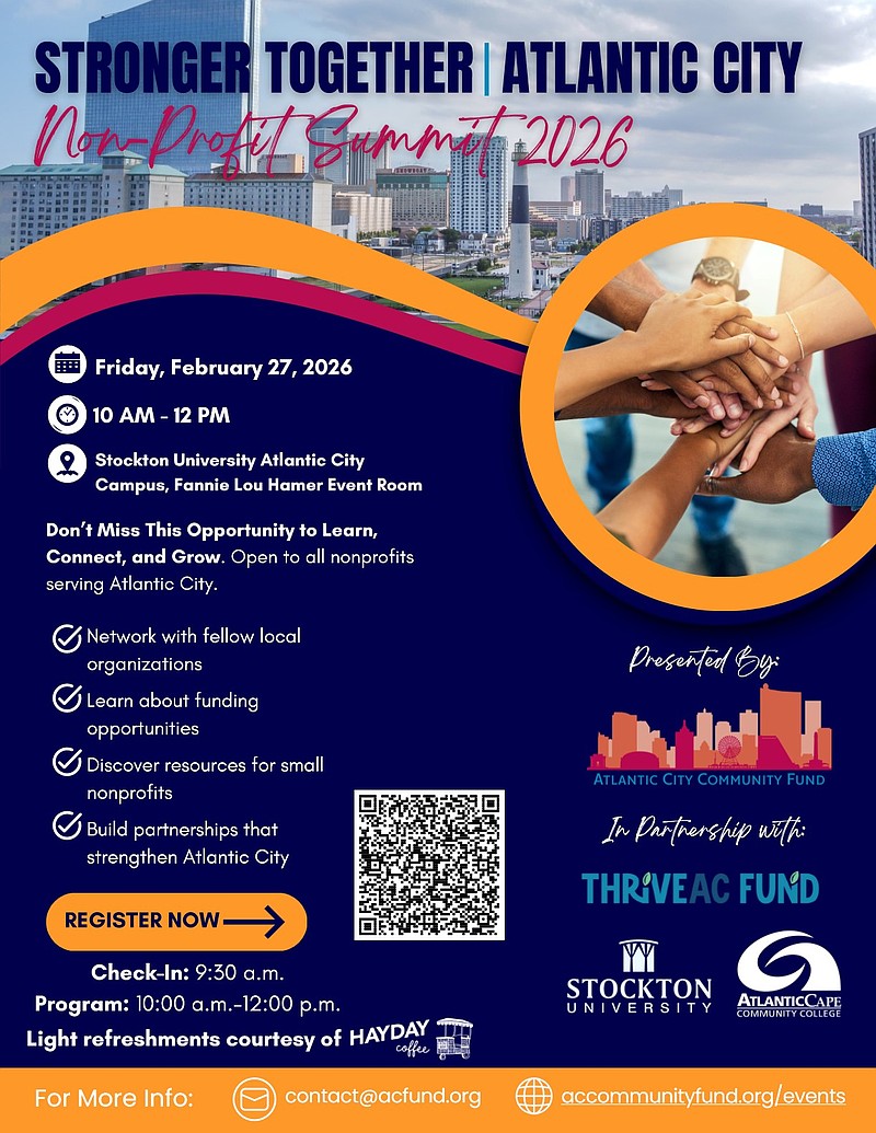 The Atlantic City Community Fund will host the Atlantic City Nonprofit Summit 10 a.m. Friday, Feb. 27 in the Fannie Lou Hamer Event Room in the Scarpa Academic Building at Stockton University’s Atlantic City campus.