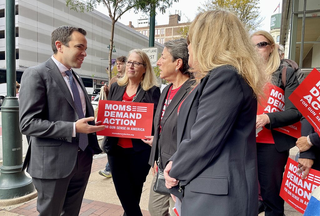 New Jersey Attorney General Matt Platkin talks with activists rallying outside the James A. Byrne U.S. Courthouse in Philadelphia on Oct. 25, 2023, in support of New Jersey’s contested gun law. (Photo by Dana DiFilippo/New Jersey Monitor) Platkin cited a number of actions as his proudest moments as attorney general, including his fights against Trump’s policies, his work against gun violence, and lawsuits against tech giants like Meta, TikTok, and Discord, whose platforms he alleges have fueled social media addiction among youth.