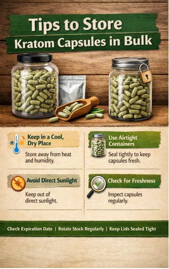 Here are some simple tips to help you store bulk Kratom capsules: