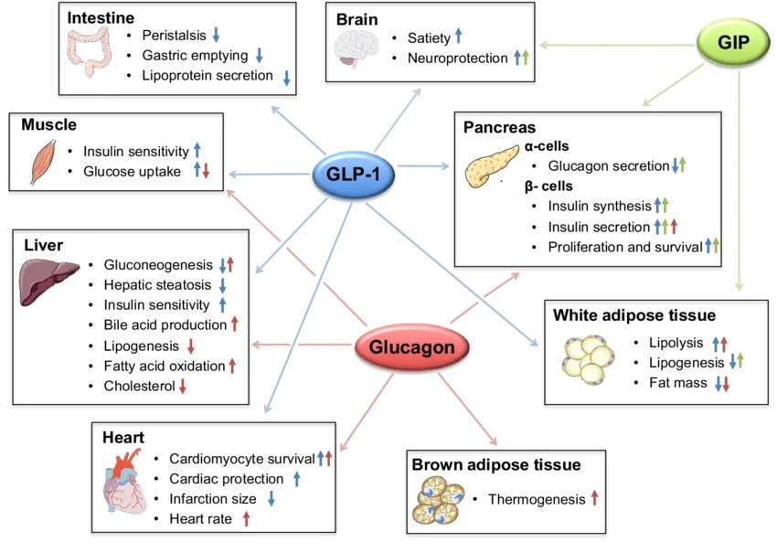 Retatrutide (Reta Glp-3) takes things a step further by acting as a triple agonist, targeting the GLP-1 receptor, the GIP receptor, and the glucagon receptor (GCGR). This makes it a potent combination that not only influences insulin release and appetite but also plays a significant role in fat metabolism and energy expenditure.