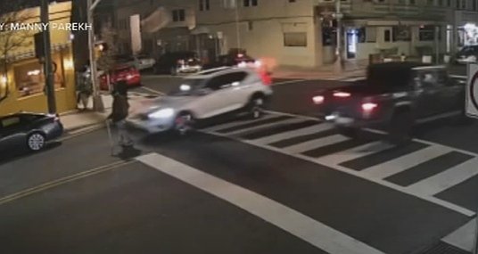 Video obtained by 6ABC from a nearby business shows the man may have been crossing against the light. He is out of the crosswalk lines when the white SUV strikes him.