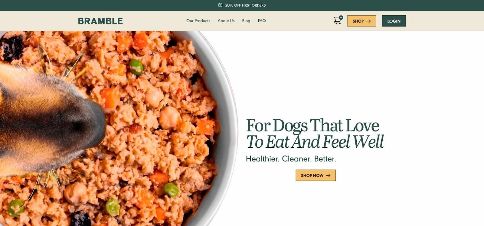Bramble fresh vegan dog food official website hero.