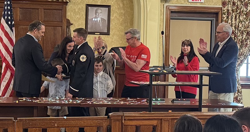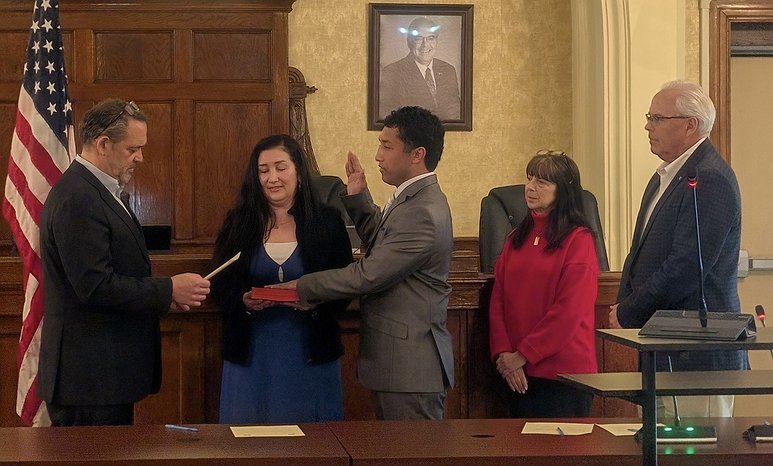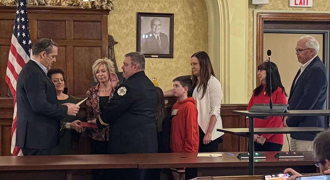 Mayor Tim Kriebel, who serves as Commissioner of Public Safety, swore in two new police recruits and promoted two firefighters to higher ranks.